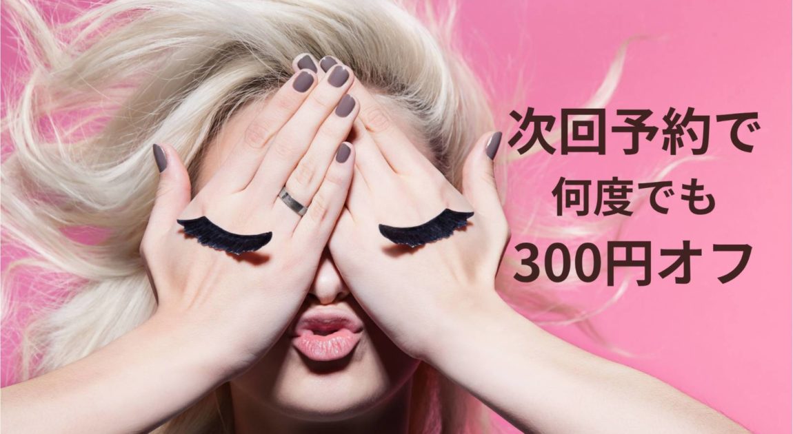 お帰りの際に次回予約をしていただくと、次回300円offのキャンペーン実施中です